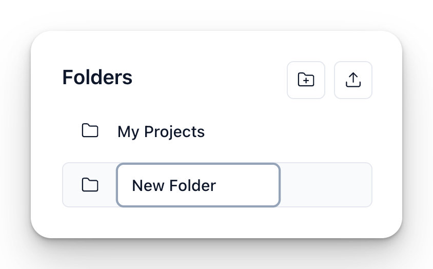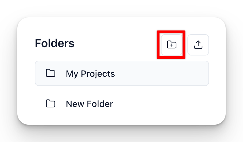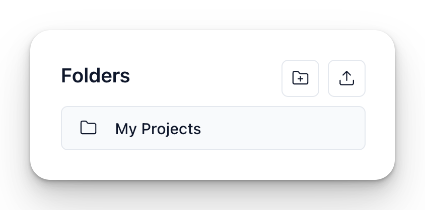 - Folders: Users can organize their projects into folders. Default folders include "My Projects" and the ability to create new folders. Hover over a folder to access options to download or delete it.