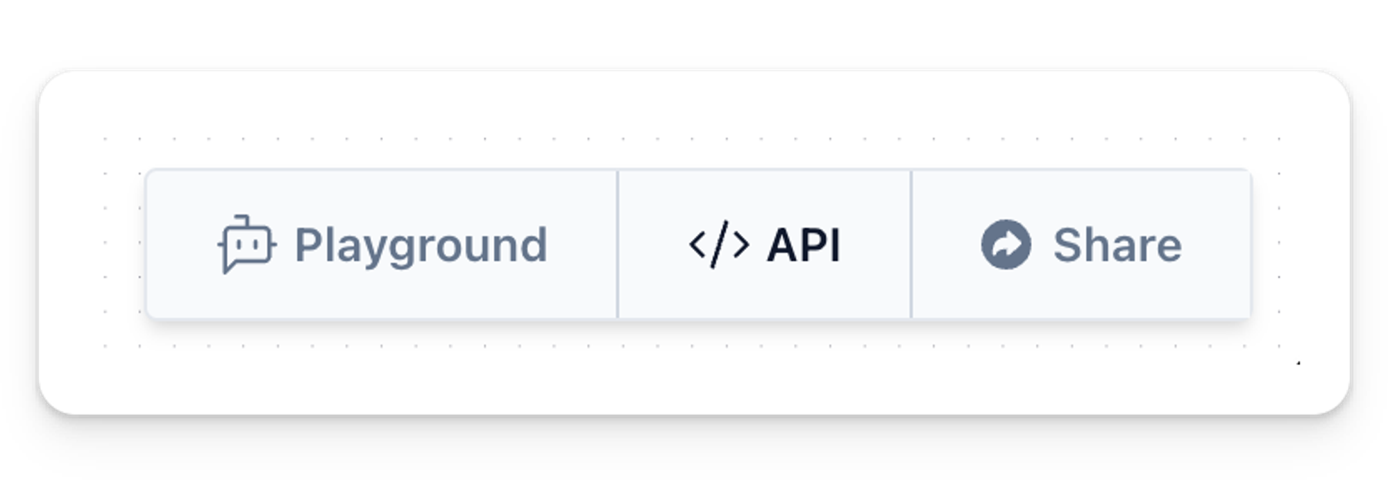 The toolbar at the bottom-right corner that provides options for executing, accessing the API, and sharing workflows.